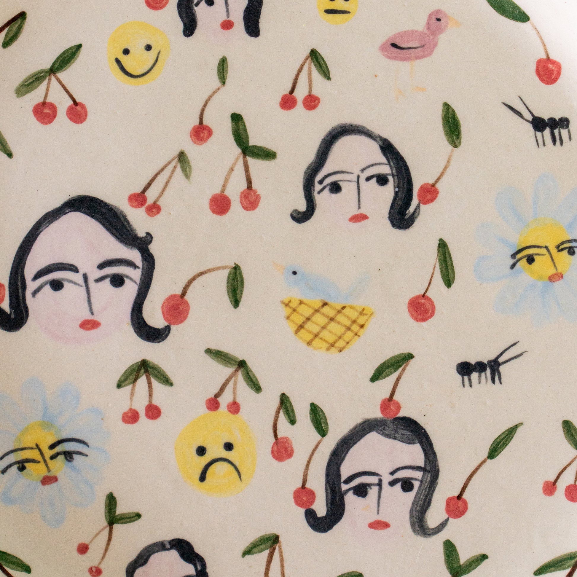 Plato M de cerámica hecho a mano y decorado con engobes.