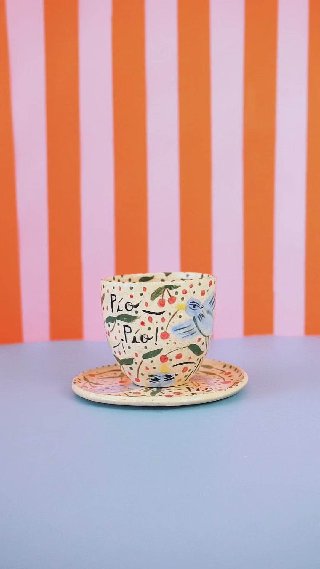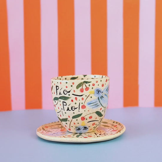 Cup + Plate "Birds sing"Set Taza sin asa "Los pájaros cantan"